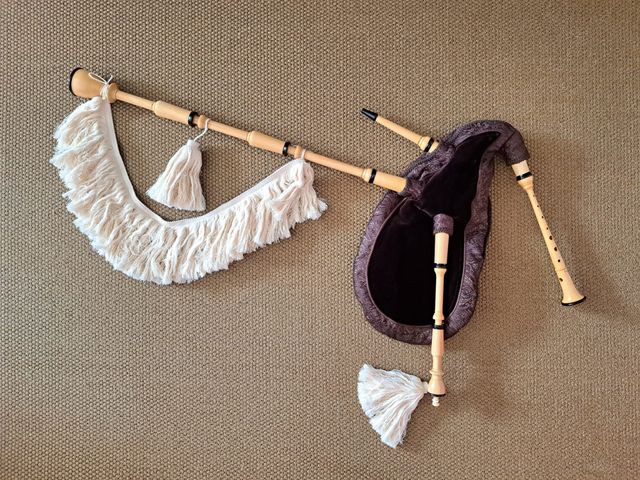 Detalles del productoGaita artesanal en Do, fabricada en buxo. Incluye ronqueta, fleco de lino y fol brocado