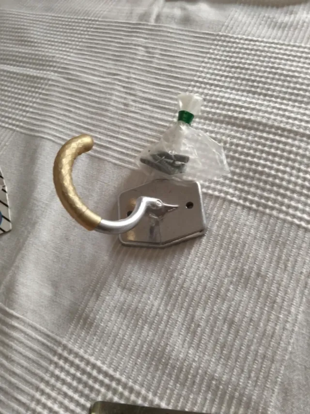 Gancho metálico para bicicleta Dispongo de 2 ud Precio ud - Brazo curvo plateado - Incluye tornillos y tacos para su instalación.