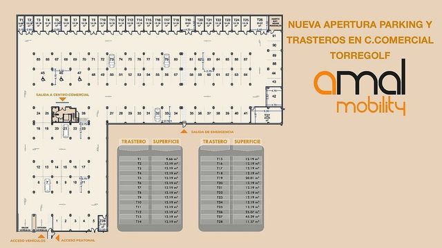 Detalles del productoCONTACTO PARA MAS INFORMACION: Anunciamos la reapertura del Parking del Centro Comercial Torre Golf ubicado en Avenida Ansaldo 10, esquina con Avenida Historiador Vicente Ramos, junto a ALDI y Restaurante Torremauro. El parking dispone de 91 plazas de aparcamiento y 27 trasteros que y está abierto 24h 365 días contando ademas con servicio de videovigilancia. Ofrecemos la posibilidad de alquilar plazas de garaje para larga estancia, así como de temporada (minimo de 1 mes) ademas del uso horario. Disponemos de trasteros de varios tamaños desde 12 a 45m2, con gran capacidad de almacenamiento y facil acceso para carga y descarga. El parking se abrirá al publico en Verano de 2025 y estamos lanzando esta oferta de nueva apertura para que pueda beneficiarse de las mejores ofertas. NO DUDE EN CONTACTARNOS.
