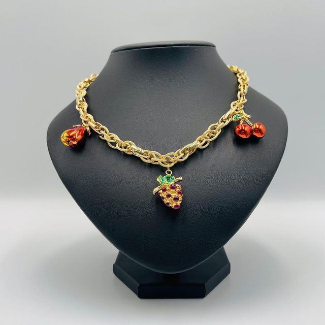 GARGANTILLA ABALORIOS PERA UVAS Y CEREZAS 18K