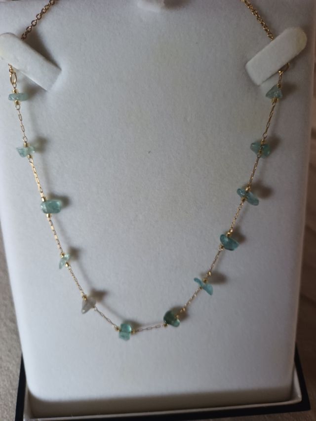 Gargantilla Acero Dorada Piedras turquesas