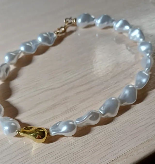Gargantilla Perla Barroca Imitación Dorada