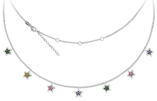 Gargantilla Plata estrellas multicolor