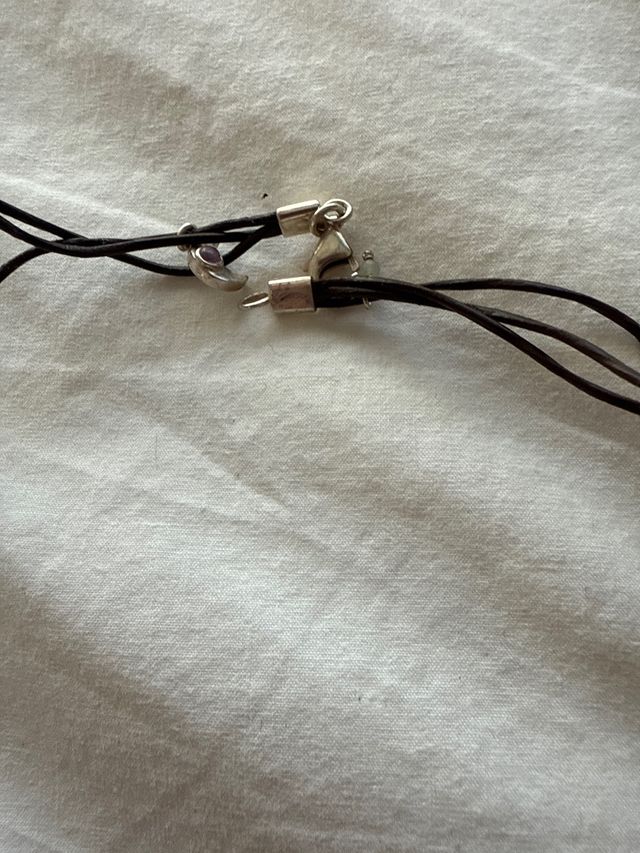 Gargantilla plata y cuero con colgante morado