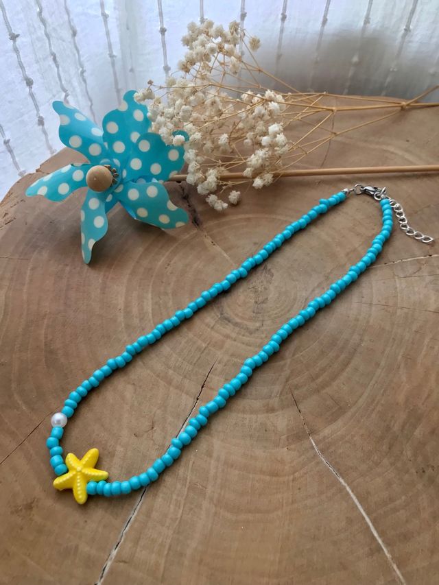 Gargantilla veraniega con Estrella de mar de cerámica. 40cm más cadenita alargadora