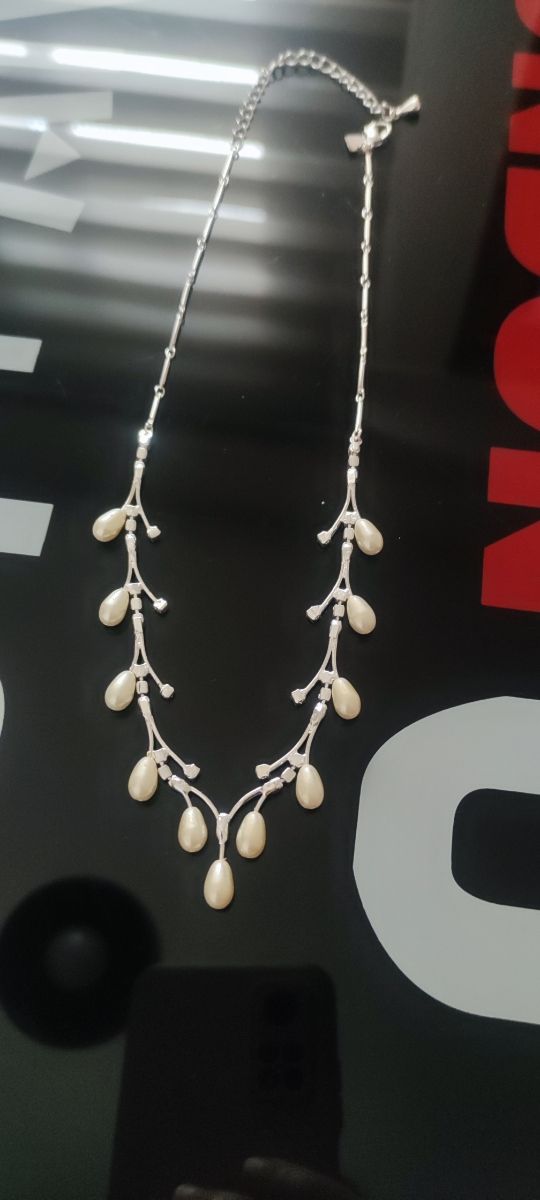 Usada en una ocasion gargantilla y pendientes perla y cristales