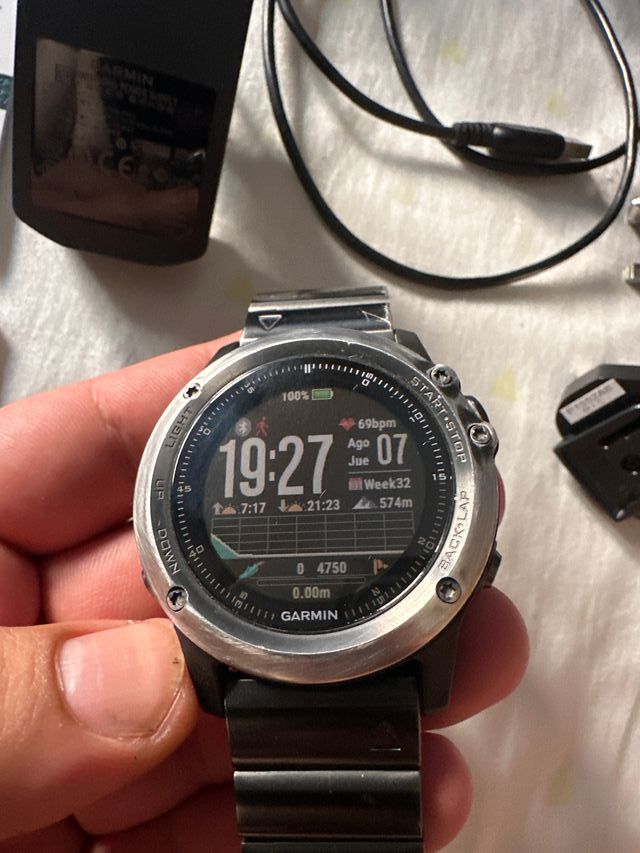 Vendo reloj deportivo Garmin Fénix 3 HR. Está en buen estado, con algunas señales de uso. - Incluye cable de carga. - Modelo: Garmin Fénix 3 HR - Color: Plata