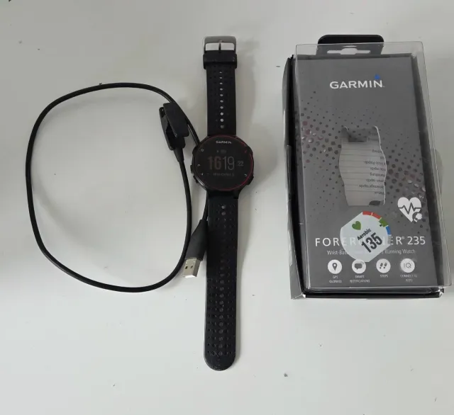 Detalles del productoReloj deportivo Garmin Forerunner 235 con GPS integrado. Incluye cargador.