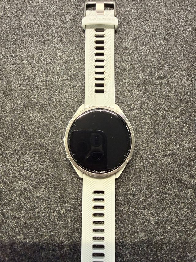 Detalles del productoReloj inteligente Garmin Forerunner 965 con correa blanca.