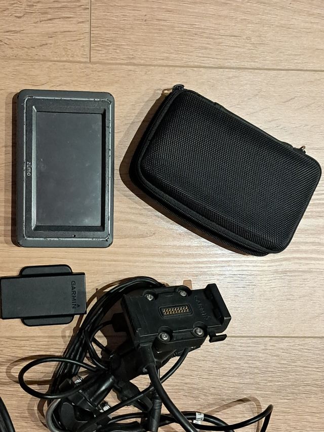 Detalles del productoNavegador GPS Garmin Zumo 660 con soporte para moto. Incluye funda protectora y cables.