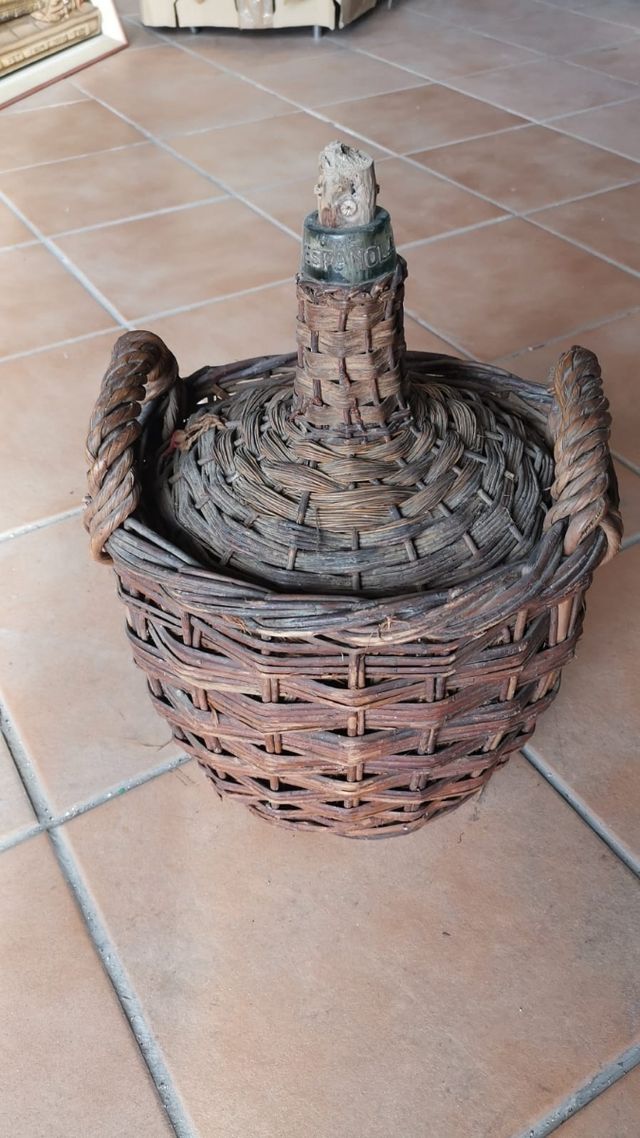 Vendo garrafa cubierta de mimbre con asas. Altura 40 cm.