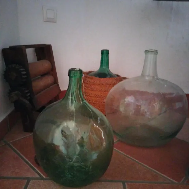 Detalles del productoConjunto de garrafas de vidrio de estilo antiguo. Ideales para decoración o coleccionismo.