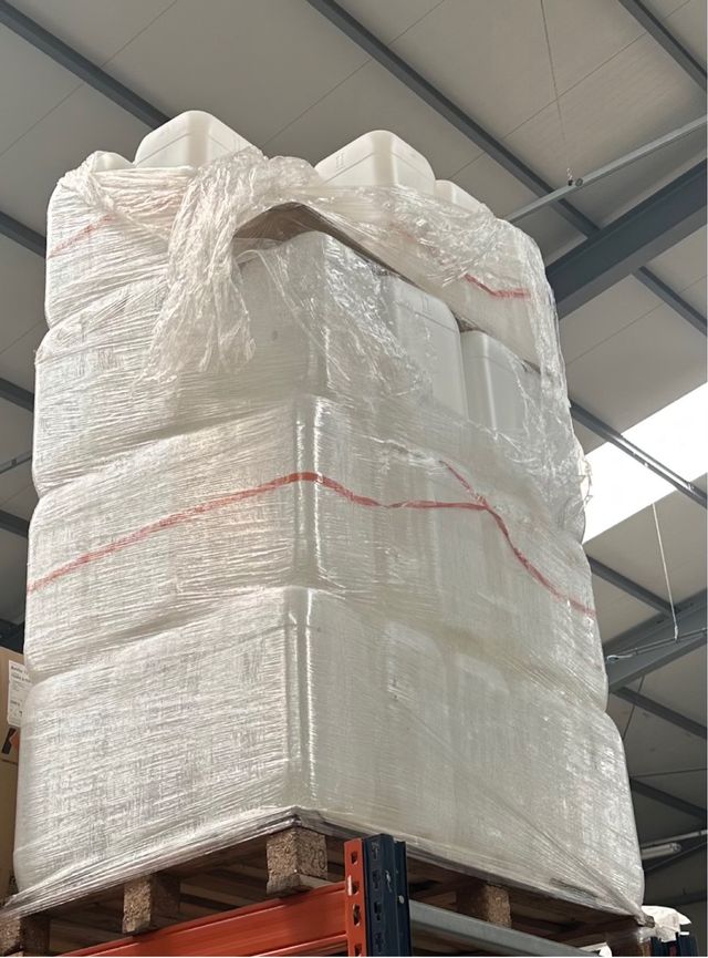 Detalles del productoSe venden garrafas de plástico nuevas. Están apiladas en un palet y envueltas en plástico transparente. Están en perfecto estado. 5€ cada una.