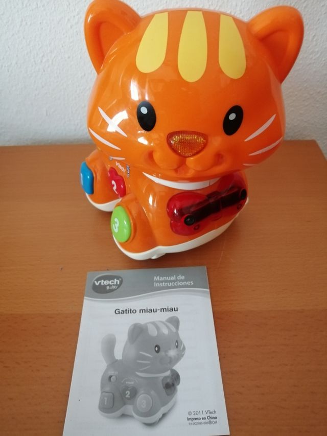 Detalles del productoEl gatito miau miau es un juguete que se desplaza por el suelo y anima al niñ@ a perseguirlo. Tiene 3 botones con diferentes formas, colores y números que activan frases, sonidos y melodías.