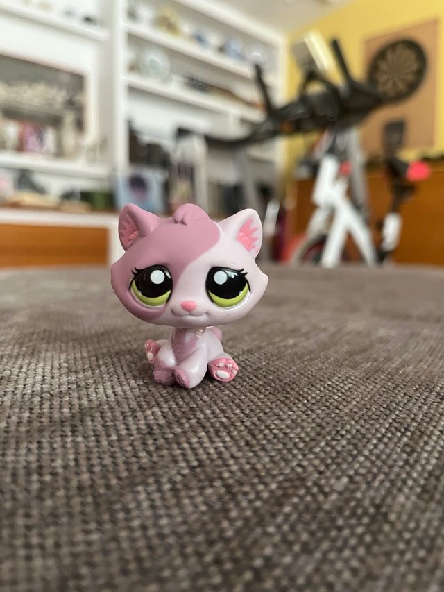Adorable gatito de la colección Littlest Pet Shop. - Número de modelo: 1660. - Diseño de gatito atigrado (tabby). - Color morado y blanco.