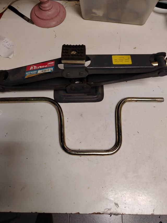 Detalles del productoGato Rombó para coche, ideal para cambios de rueda. Es un gato de coche universal, aparentemente en buen estado.