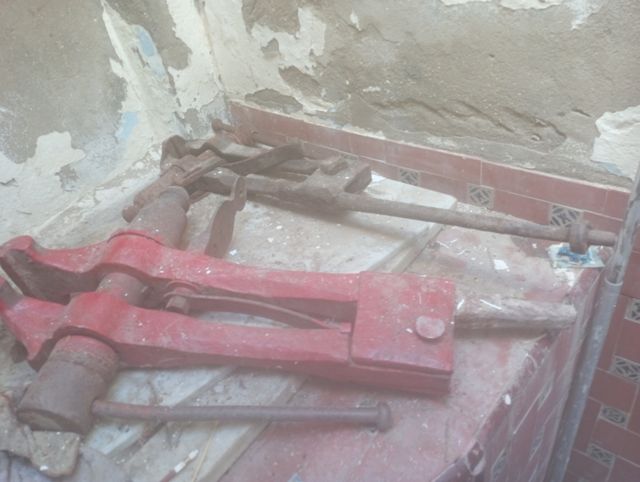 Herramienta de banco de color rojo. - Mecanismo de sujeción. - Construcción robusta.