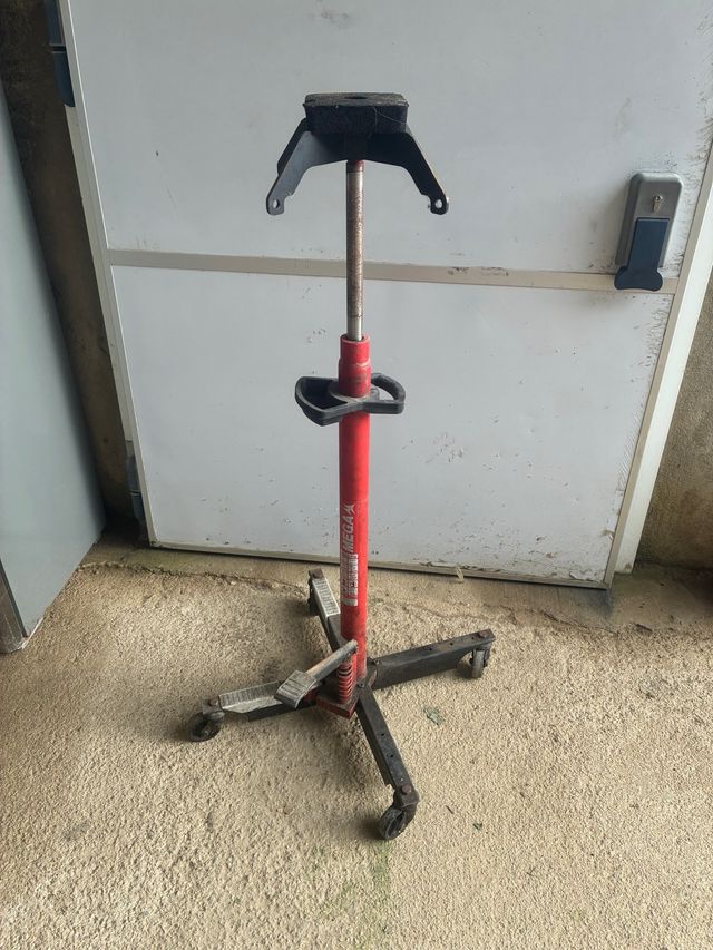 Gato de foso marca Mega, modelo TRS750. Ideal para trabajos en el taller. - Base con ruedas para fácil movilidad. - Altura ajustable. - Soporte superior acolchado.