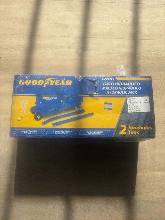 Detalles del productoGato hidráulico Goodyear GOD1000, nuevo y sin abrir la caja. Capacidad de 2 toneladas.