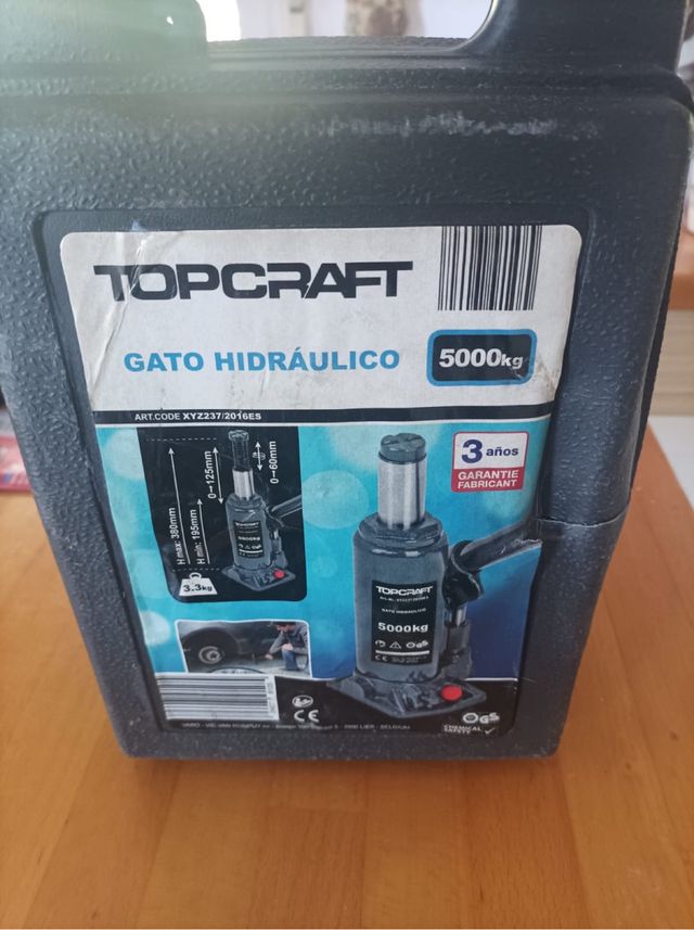 Detalles del productoGato hidráulico de la marca TOPCRAFT con capacidad de 5000kg.