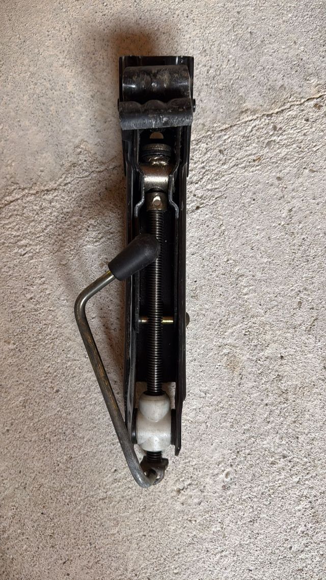 Detalles del productoGato mecánico tipo tijera para coche. Permite elevar el vehículo para realizar tareas de mantenimiento o cambio de rueda.