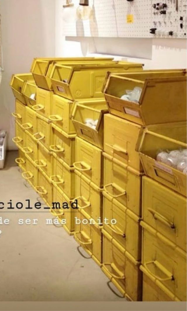 Gaveta metálica vintage amarilla apilable