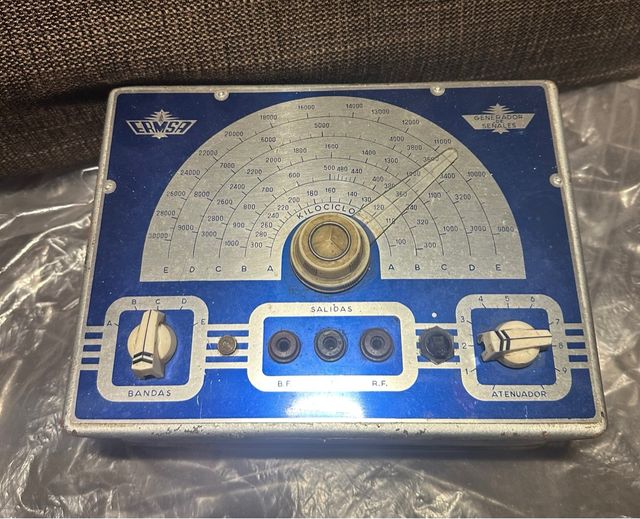 Detalles del productoGenerador de señales de la escuela de radio Maymo.Ermsa con dial de kilociclos y selector de bandas.