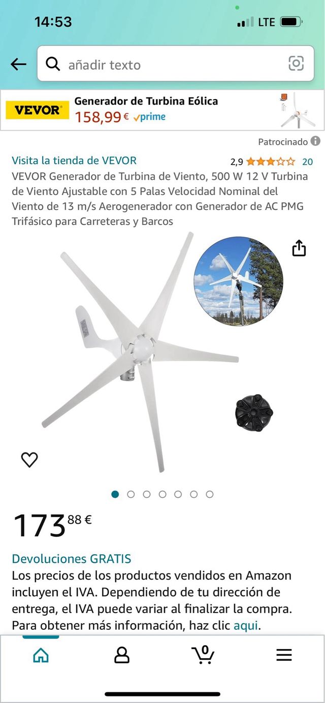 generador de turbina de viento 500w 12v ajustable con 5 palas para carreteras y barcos