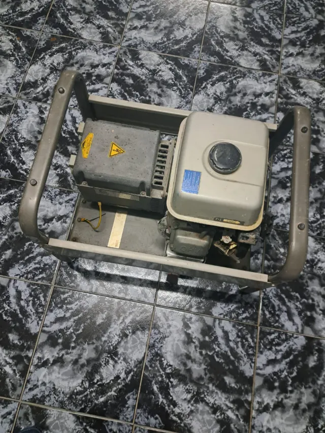 Generador eléctrico portátil con motor de gasolina. - Estructura metálica resistente. - Tanque de combustible. - Panel de control.