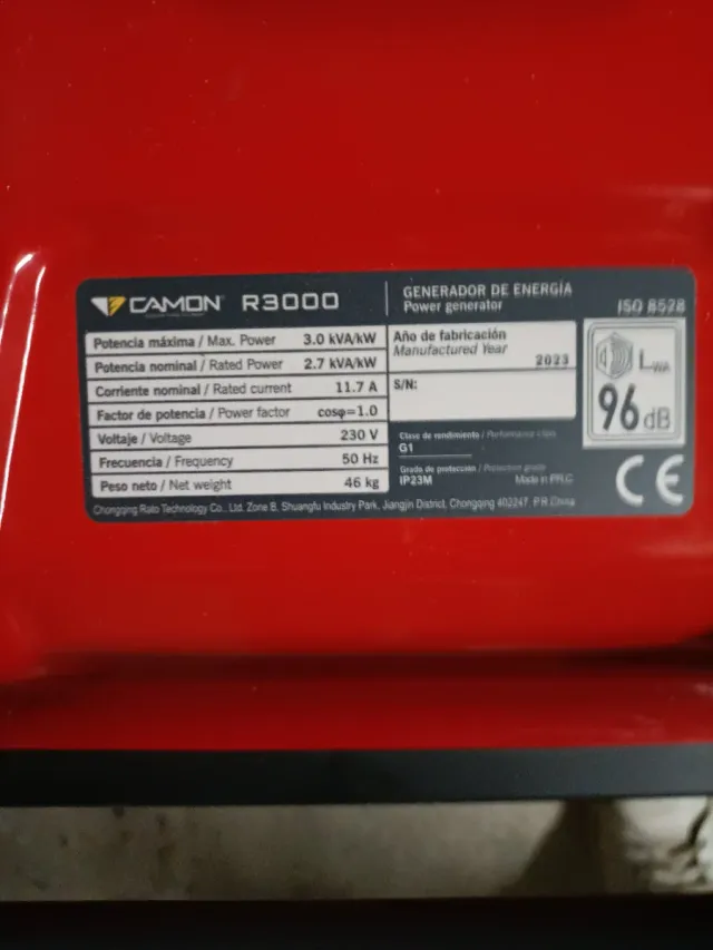 Detalles del productoGenerador eléctrico CAMON R3000 en color rojo. Comprado en marzo de 2025, apenas usado, necesito más potencia