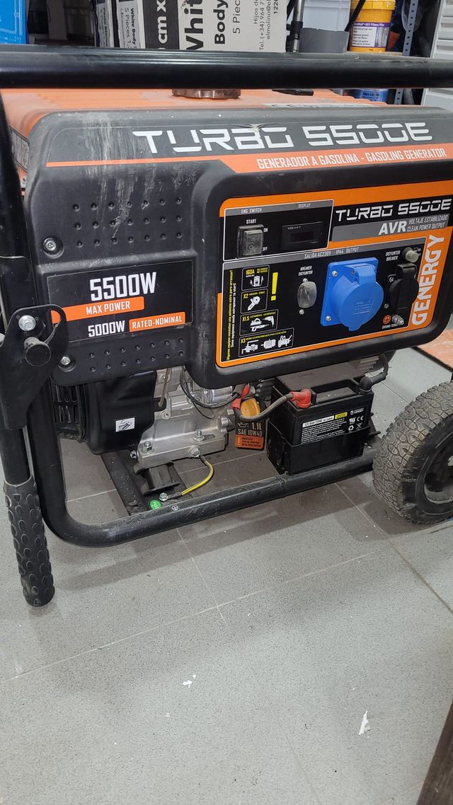Detalles del productoGenerador eléctrico de gasolina GENERGY TURBO 5500E con una potencia máxima de 5500W y nominal de 5000W.