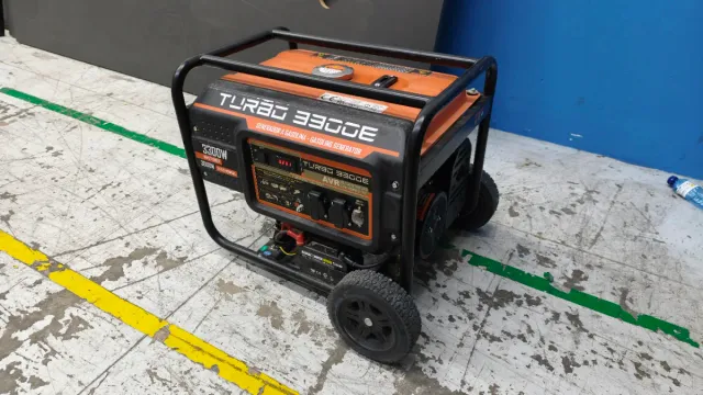 Generador de gasolina Turbo 3300W con AVR. - Potencia máxima de 3300W. - Modelo: Turbo 3300GE. - Incluye varias tomas de corriente.