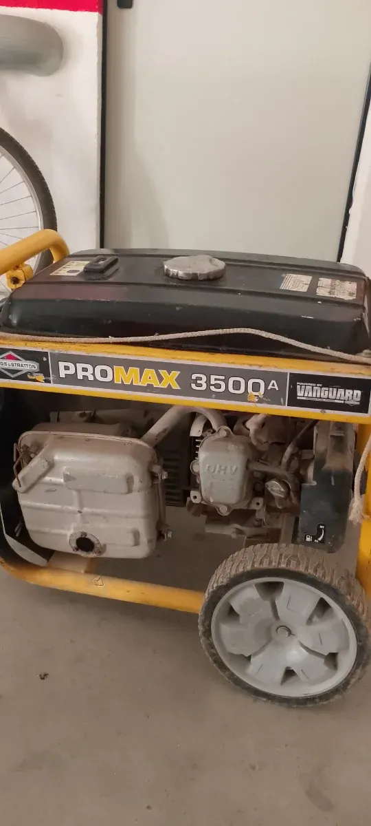 Generador eléctrico PROMAX 3500A con motor Vanguard. - Modelo: PROMAX 3500A - Motor: Vanguard - Color: Negro y amarillo - Ruedas para transporte