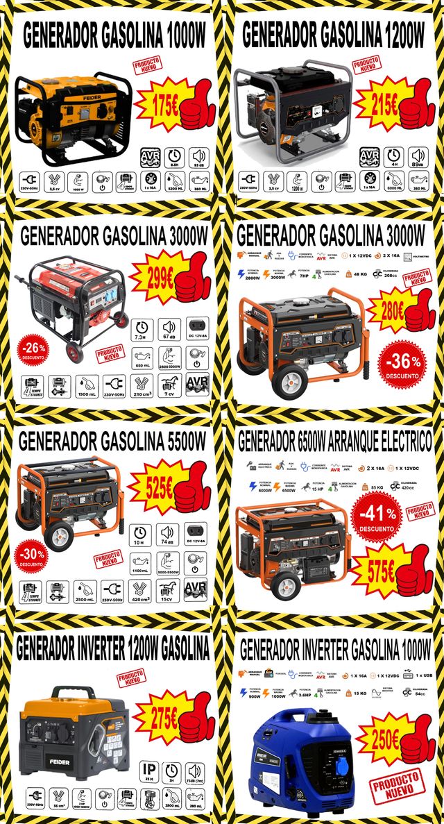 Detalles del productoConjunto de generadores de gasolina con diferentes potencias.