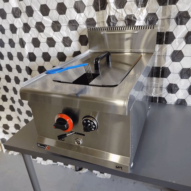 ⏺️ 🔍 Atributos: Acero Inoxidable. Potencia: 7,5 kw. Capacidad: 14 litros Nº Cubas: 1 Energía: Gas Peso: 13 kg Temperatura: 30~200ºC Grifo de desagüe Dispositivo de seguridad y control de temperatura. Tipo de Cabezal GR: 30GR