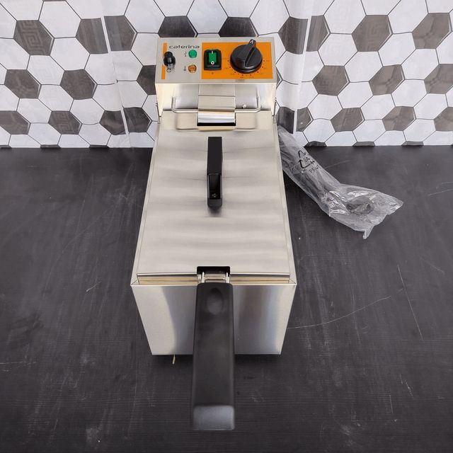 Freidora Industrial Eléctrica Simple 5 Lts Profunda sin grifo de desagüe en modelo sobremesa de la marca Caterina. 📐 Mide 29x43x27 cm