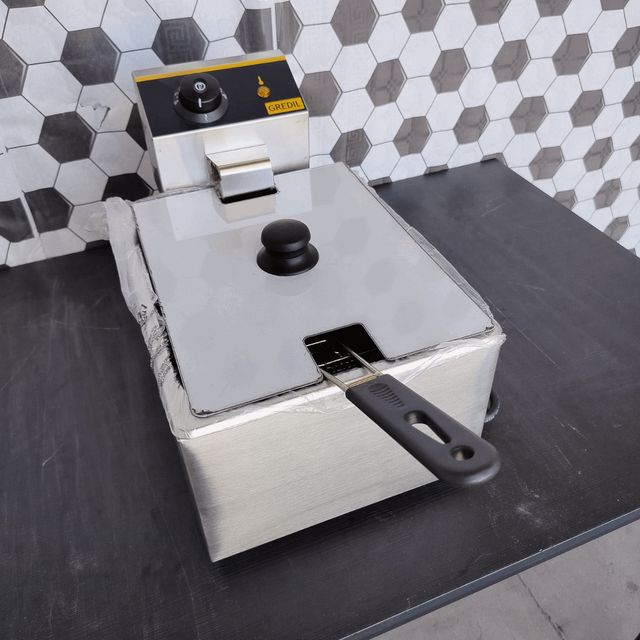 Freidora eléctrica simple de 5 litros de capacidad en modelo sobremesa marca Gredil. 📐 Mide 26x42x27 cm