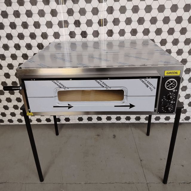 Horno Eléctrico de acero con puerta de vidrio con una cámara (simple) para la cocción de 4 pizzas de 35 cm. 📐 Mide 93x84x34 cm