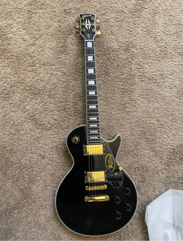 Guitarra eléctrica Gibson Les Paul Custom 1958 en color negro. Ni idea de guitarras. Estaba en el altillo de mi padre.
