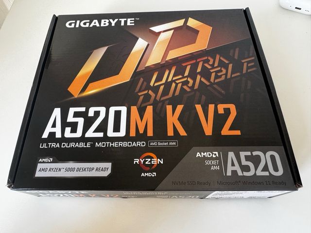 Placa base Gigabyte A520M K V2. - Soporte para procesadores AMD Ryzen 5000. - Socket AM4. - Preparada para NVMe SSD. - Compatible con Windows 11.