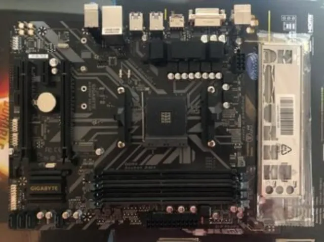 Placa base Gigabyte B450M DS3H. - Socket AM4. - Soporte para 4 memorias DDR4. - Actualizada para ryzen 5000 (usada con ryzen 5 5500). - Funciona perfectamente.
