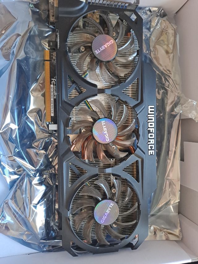 Detalles del productoTarjeta gráfica de 4GB, hasta día de hoy ha aguantado la mayoría de juegos de este último año, no a calidad ultra pero jugables a medio/Alto. Juegos como GTA V lo corre en alto, Assassins creed Odissey Battlefield V etc... Tiene poco uso, soy padre de dos niños y no me da la vida. Le he cambiado la pasta térmica para qué rinda como nueva .