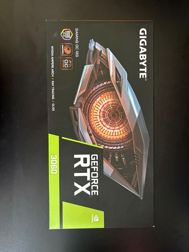 Detalles del productoTarjeta gráfica Gigabyte RTX 3060 OC con 12GB de memoria.