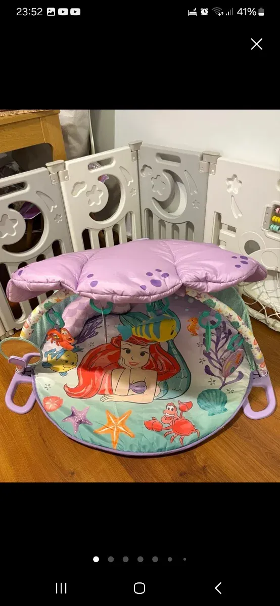 Detalles del productoGimnasio para bebés con diseño de Ariel de La Sirenita. Incluye arco con juguetes colgantes.