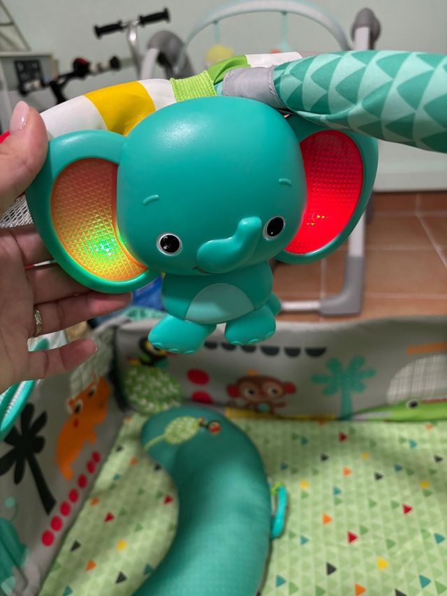 Detalles del productoGimnasio para bebés con un adorable elefante de peluche y elementos interactivos.