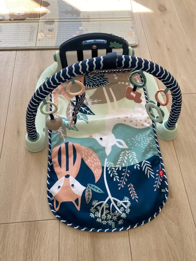 Detalles del productoGimnasio para bebés de la marca Fisher-Price con un diseño de bosque y animales.