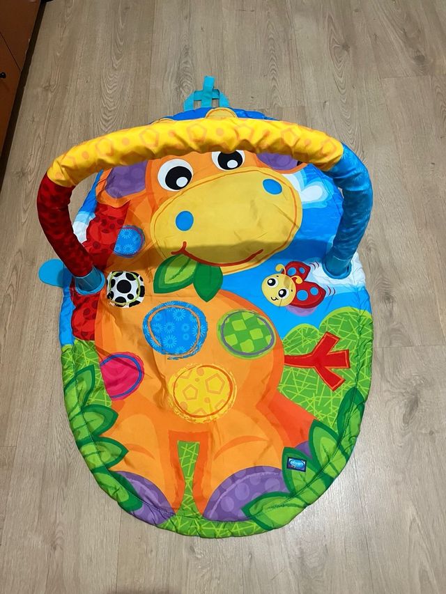 Divertido gimnasio para bebés con diseño de jirafa. - Arco superior con juguetes colgantes. - Colchoneta acolchada con dibujos coloridos.