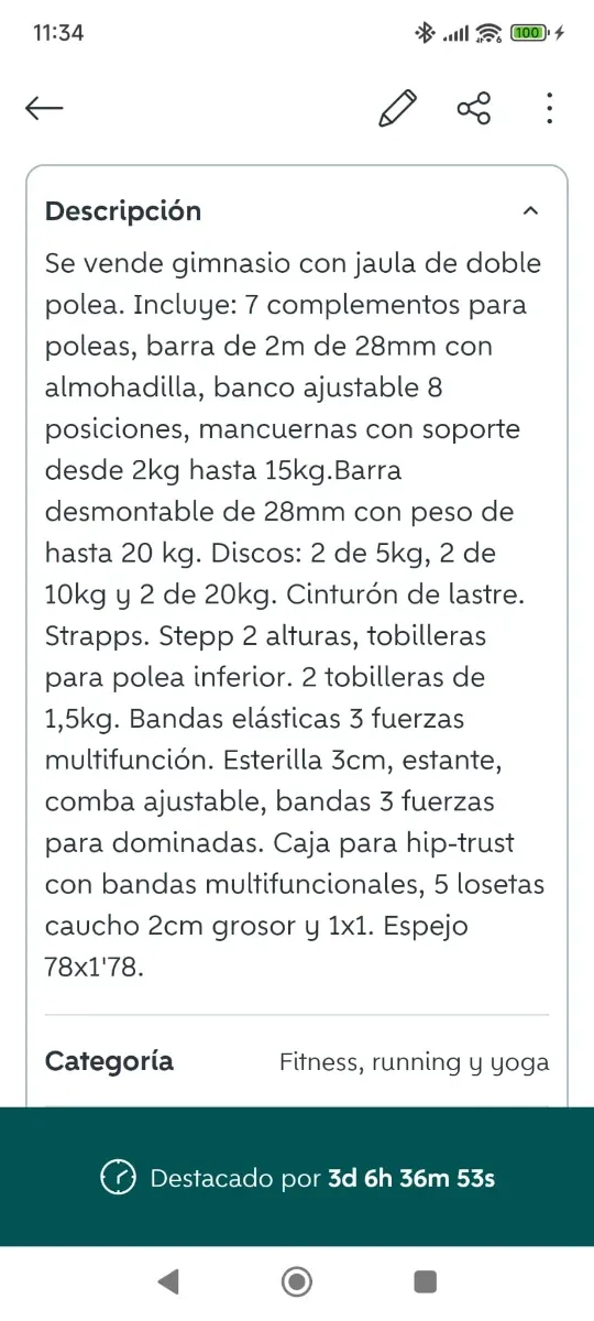 Detalles del productoSe vende gimnasio completo con jaula de doble polea.