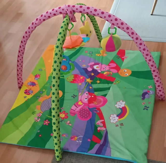 Gimnasio de actividades para bebés con un diseño colorido y divertido. Incluye un arco con varios juguetes colgantes para estimular el desarrollo del bebé.