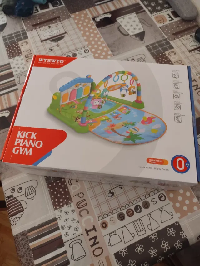 Gimnasio de actividades para bebés con un piano musical. - Incluye arco de juegos con juguetes colgantes. - Piano desmontable. - Diseño colorido y atractivo.